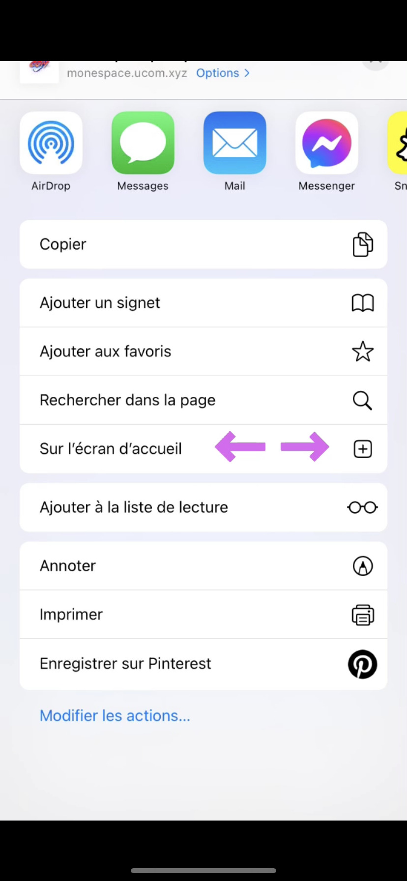 - Touchez alors la commande Ajouter le raccourci à l’écran d’accueil.