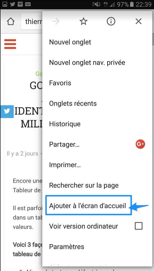 - Touchez quelques instants le site favoris à mettre sur l’accueil.
